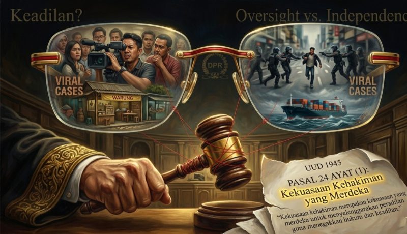 Dalam beberapa bulan terakhir, Komisi III Dewan Perwakilan Rakyat Republik Indonesia [DPR RI] menunjukkan peningkatan intensitas fungsi pengawasan di bidang hukum. Melalui Rapat Dengar Pendapat Umum [RDPU] dan rapat-rapat khusus, Komisi III menyoroti sejumlah perkara pidana yang tengah berjalan dan menjadi perhatian publik. Kasus-kasus viral seperti Hogi Minaya [kontroversi korban menjadi tersangka karena mengejar penjambret hingga tewas), ABK Fandi Ramadhan [Perkara tindak pidana narkotika dengan tuntutan pidana mati], Nabilah O’Brien [Merekam pelanggan yang tidak membayar, lalu justru ditetapkan sebagai tersangka], Andrie Yunus [Perkara penyiraman air keras yang belum ada penetapan tersangka hingga tulisan ini disusun], hingga Amsal Christy Sitepu [Perkara tindak pidana korupsi yang melibatkan profesi di bidang industri kreatif], semua itu menimbulkan pertanyaan fundamental mengenai batas-batas kewenangan pengawasan legislatif terhadap tugas yudikatif.